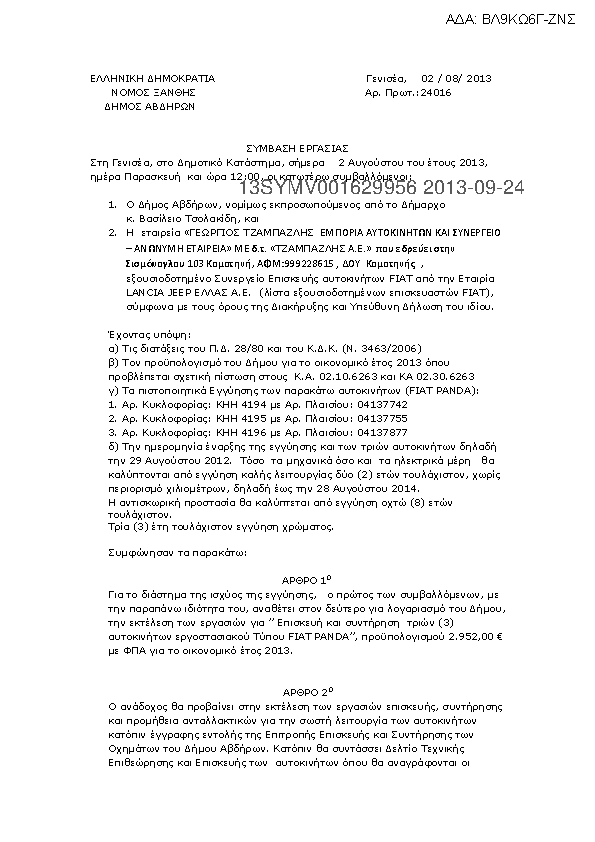 1. ’’ Επισκευή και συντήρηση τριών (3) αυτοκινήτων εργοστασιακού Τύπου FIAT PANDA’’