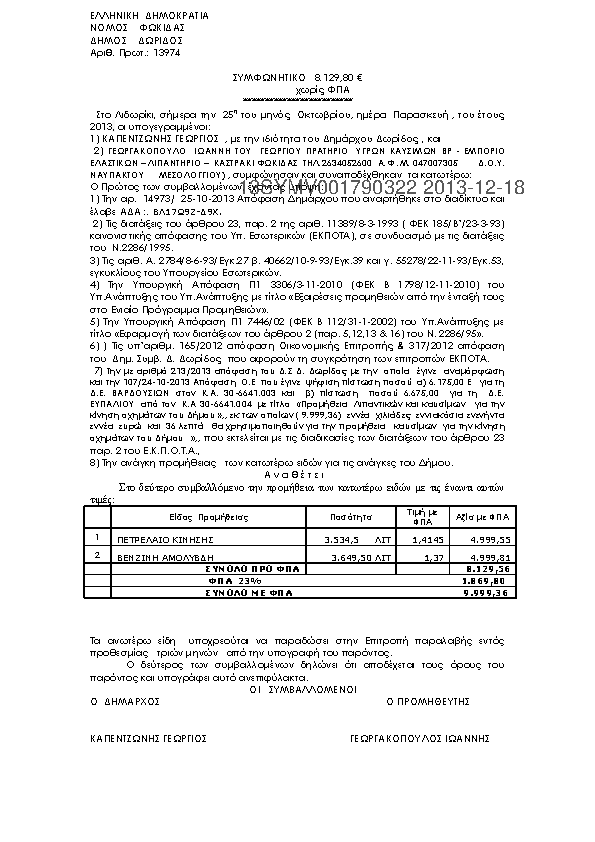 10. Προμήθεια Λιπαντικών και καυσίμων για την κίνηση οχημάτων Δ.Ε. Βαρδουσίων και Δ.Ε. Ευπαλίου