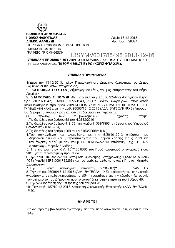 10. ΠΡΟΜΗΘΕΙΑ ΥΛΙΚΩΝ ΑΥΤΟΜΑΤΟΥ ΠΟΤΙΣΜΑΤΟΣ ΣΤΟ ΓΗΠΕΔΟ ΑΝΘΗΛΗΣ