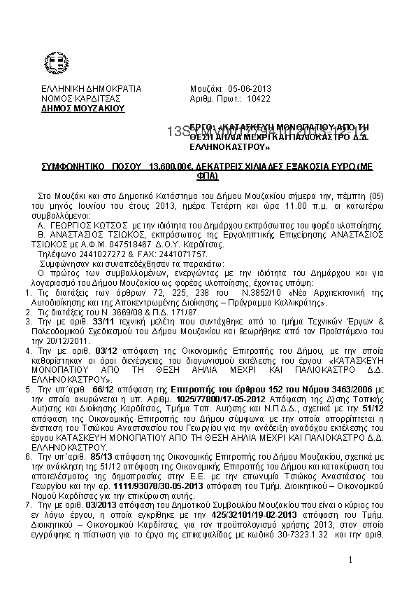 1. ΚΑΤΑΣΚΕΥΗ ΜΟΝΟΠΑΤΙΟΥ ΑΠΟ ΤΗ ΘΕΣΗ ΑΗΛΙΑ ΜΕΧΡΙ ΚΑΙ ΠΑΛΙΟΚΑΣΤΡΟ Δ.Δ. ΕΛΛΗΝΟΚΑΣΤΡΟΥ