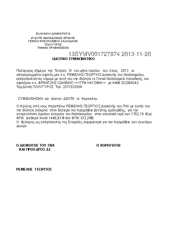 10. ΙΔΙΩΤΙΚΟ ΣΥΜΦΩΝΗΤΙΚΟ ΓΙΑ ΠΡΟΜΗΘΕΙΑ ΑΜΟΛΥΒΔΗΣ ΒΕΝΖΙΝΗΣ ΓΙΑ ΑΣΘΕΝΟΦΟΡΟ ΚΥΚ