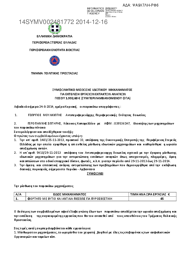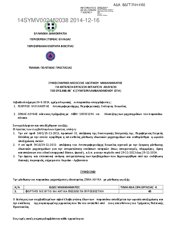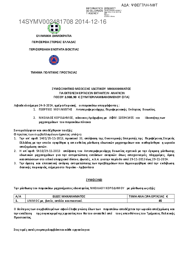 3. ΣΥΜΦΩΝΗΤΙΚΟ ΜΙΣΘΩΣΗΣ ΙΔΙΩΤΙΚΟΥ ΜΗΧΑΝΗΜΑΤΟΣ ΓΙΑ ΕΚΤΕΛΕΣΗ ΕΡΓΑΣΙΩΝ ΕΚΤΑΚΤΩΝ ΑΝΑΓΚΩΝ 2.988,90