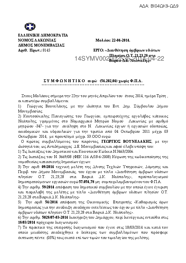 6. ΣΥΜΦΩΝΗΤΙΚΟ ΤΟΥ ΕΡΓΟΥ ΣΥΝΔΕΣΕΙΣ ΓΙΑ ΤΗΝ ΟΛΟΚΛΗΡΩΣΗ ΔΙΚΤΥΟΥ ΑΠΟΧΕΤΕΥΣΗΣ ΓΕΦΥΡΑΣ ΜΟΝΕΜΒΑΣΙΑΣ