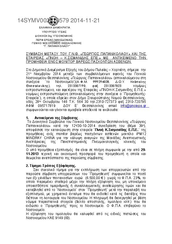 1. ΣΥΜΒΑΣΗ ΠΡΟΜΗΘΕΙΑΣ ΜΟΝΙΤΟΡ ΒΑΡΕΩΣ ΠΑΣΧΟΝΤΩΝ ΑΣΘΕΝΩΝ