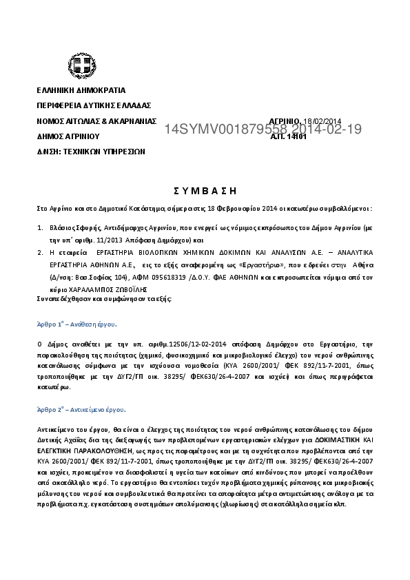 9. Εργασίες παρακολούθησης ποιότητας πόσιμου νερού στο Δήμο Αγρινίου