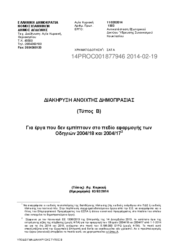 Αναζήτηση σε προκηρύξεις και συμβάσεις για: