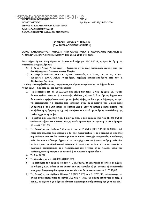 8. ΠΡΟΓΡΑΜΜΑΤΙΚΗ ΣΥΜΒΑΣΗ ΑΠΟΚΟΜΙΔΗΣ ΤΩΝ ΑΠΟΡΡΙΜΜΑΤΩΝ ΣΤΟ ΔΗΜΟ ΠΑΛΑΜΑ ΓΙΑ ΤΟ ΕΤΟΣ 2015.