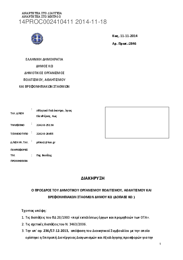 Αναζήτηση σε προκηρύξεις και συμβάσεις για:
