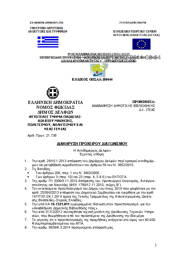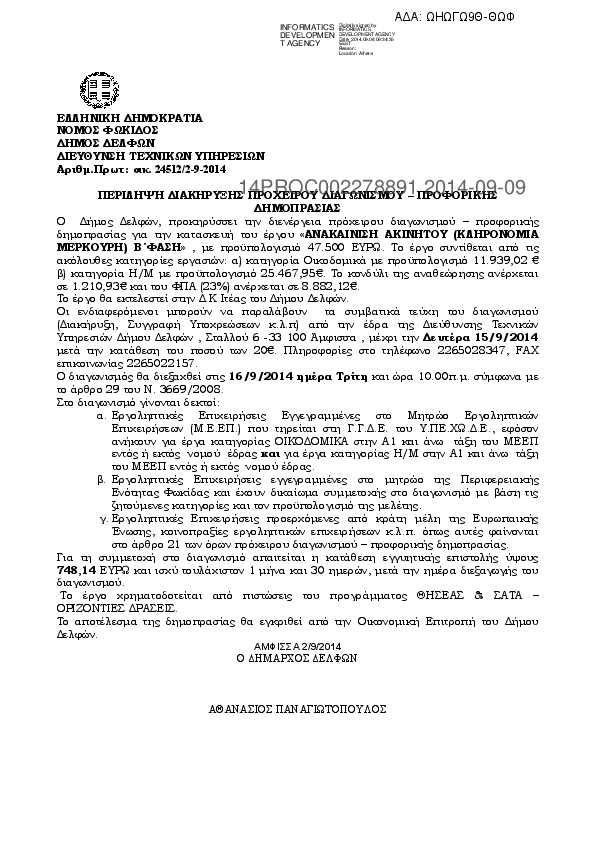 Αναζήτηση σε προκηρύξεις και συμβάσεις για: