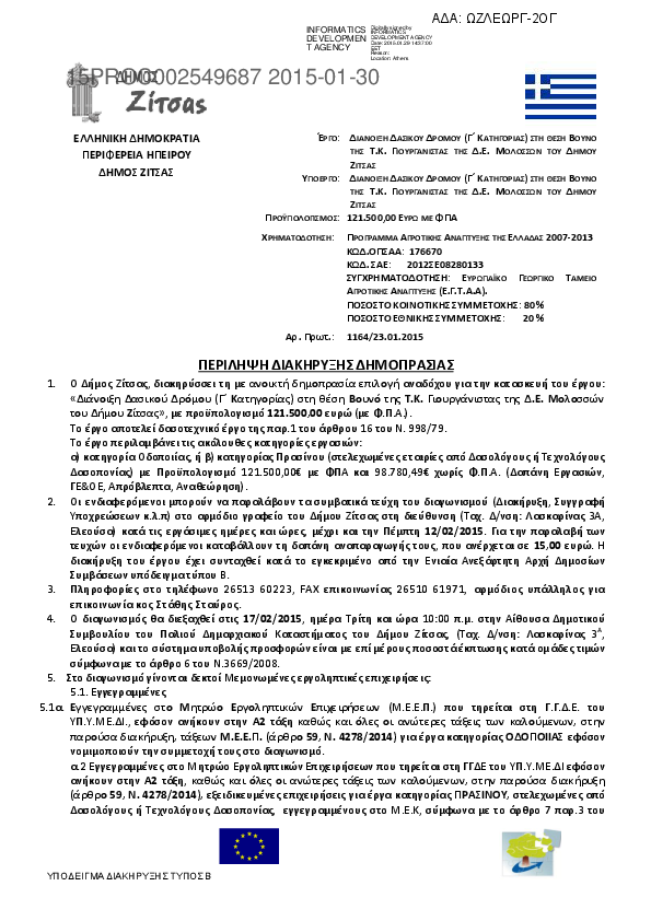 3. ΔΙΑΚΗΡΥΞΗ ΑΝΟΙΧΤΗΣ ΔΙΑΔΙΚΑΣΙΑΣ ΤΟΥ ΕΡΓΟΥ ΑΣΦΑΛΤΟΣΤΡΩΣΕΙΣ ΟΔΩΝ ΤΟΠΙΚΩΝ ΚΟΙΝΟΤΗΤΩΝ ΔΗΜΟΥ ΖΙΤΣΑΣ