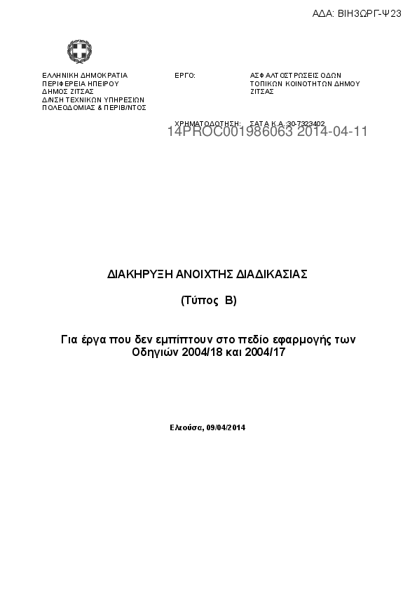 2. ΔΙΑΚΗΡΥΞΗ ΑΝΟΙΧΤΗΣ ΔΙΑΔΙΚΑΣΙΑΣ ΤΟΥ ΕΡΓΟΥ ΑΣΦΑΛΤΟΣΤΡΩΣΕΙΣ ΟΔΩΝ ΤΟΠΙΚΩΝ ΚΟΙΝΟΤΗΤΩΝ ΔΗΜΟΥ ΖΙΤΣΑΣ