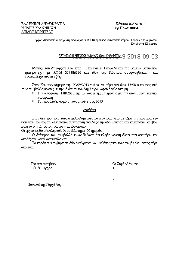2. Επισκευή συντήρηση σκάλας στην οδό Κύπρου και κατασκευή κόμβου Βαγενά στη Δημοτική Κοινότητα Κόνιτσα