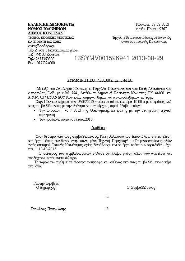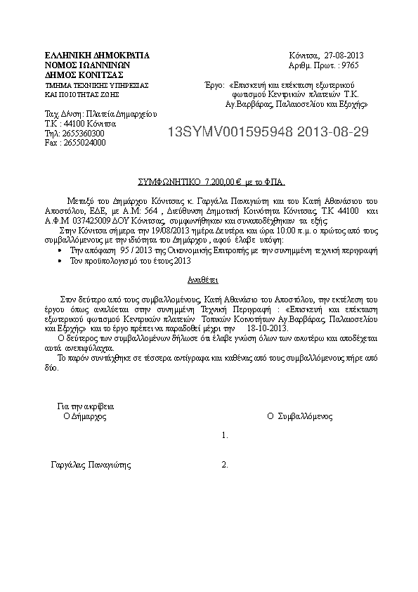 4. Σύμβαση για"Επισκευή & επέκταση εξωτ. φωτισμού Κεντρ.πλατειών Τ.Κ. Αγ.Βαρβάρας, Παλαιοσελίου, Εξοχής