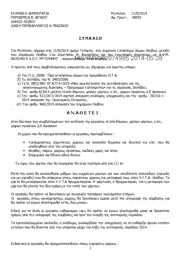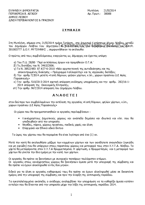 1. Κοπή θάμνων, ψηλών χόρτων, κ.λπ., χώρων πρασίνου Δ.Ε. Αγιάσου