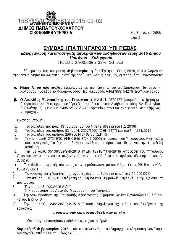 2. ΔΙΟΡΓΑΝΩΣΗ ΚΑΙ ΥΠΟΣΤΗΡΙΞΗ ΑΠΟΚΡΙΑΤΙΚΩΝ ΕΚΔΗΛΩΣΕΩΝ ΕΤΟΥΣ 2015 ΔΗΜΟΥ ΠΑΠΑΓΟΥ ΧΟΛΑΡΓΟΥ