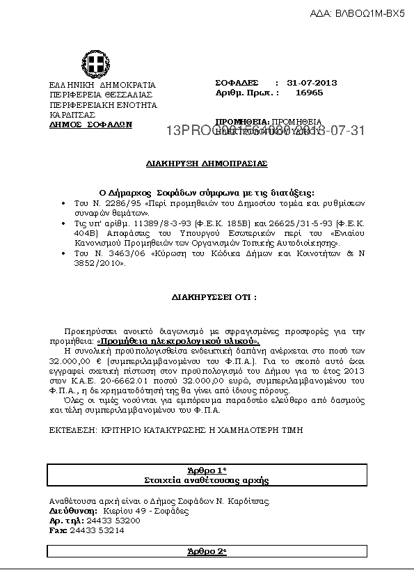 3. ΔΙΑΚΗΡΥΞΗ ΔΗΜΟΠΡΑΣΙΑΣ "ΠΡΟΜΗΘΕΙΑ ΗΛΕΚΤΡΟΛΟΓΙΚΟΥ ΥΛΙΚΟΥ"