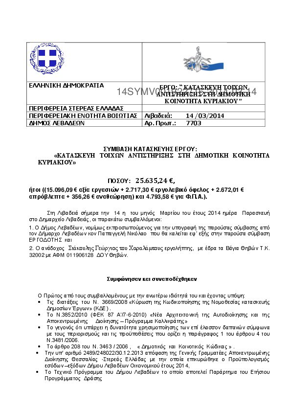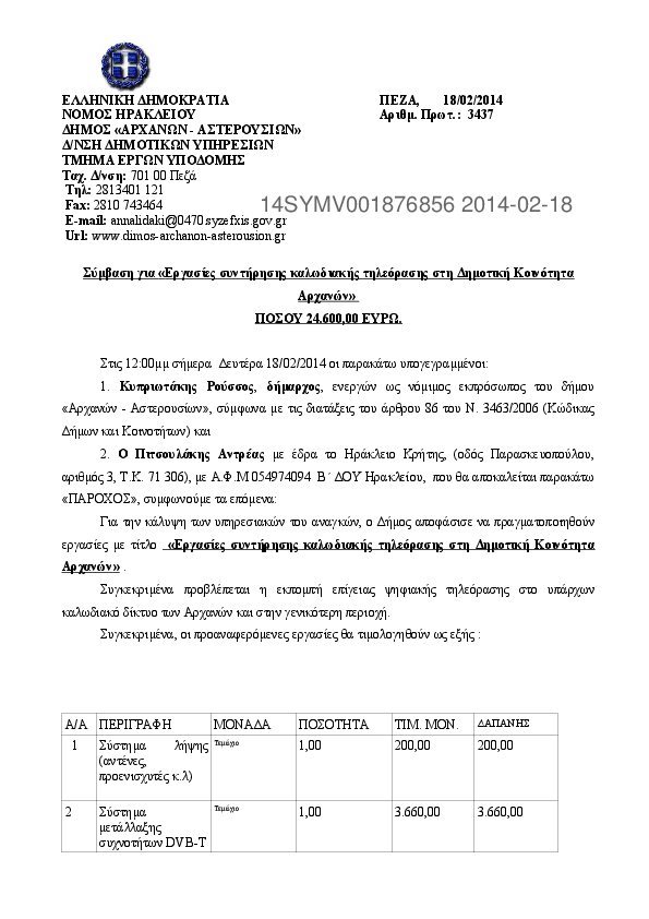 4. Σύμβαση για «Εργασίες συντήρησης καλωδιακής τηλεόρασης στη Δημοτική Κοινότητα Αρχανών»