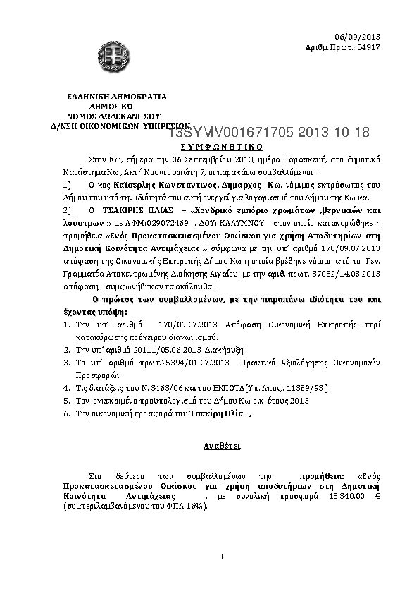 1. ΠΡΟΜΗΘΕΙΑ ΕΝΟΣ ΠΡΟΚΑΤΑΣΚΕΥΑΣΜΕΝΟΥ ΟΙΚΙΣΚΟΥ ΓΙΑ ΧΡΗΣΗ ΑΠΟΔΥΤΗΡΙΩΝ ΣΤΗ ΔΗΜΟΤΙΚΗ ΚΟΙΝΟΤΗΤΑ ΑΝΤΙΜΑΧΕΙΑΣ