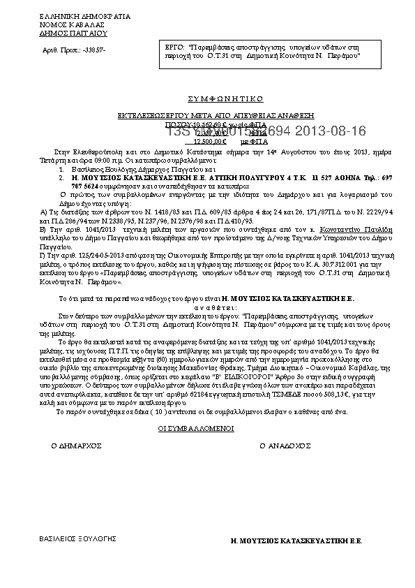 3. ΠΕΡΙΛΗΨΗ ΔΙΑΚΗΡΥΞΗΣ ΓΙΑ ΤΟ ΕΡΓΟ «Κατασκευή εξωτερικού δικτύου ύδρευσης για ενίσχυση υδρευτικών αναγκών από Άγιο Παύλο προς Τοπικές Κοινότητες και Δημοτική Κοινότητα Μεσσήνης του Δήμου Μεσσήνης, Β’ Φάση (A’ ΕΙΔΙΚΟΣ ΠΡΟΫΠΟΛΟΓΙΣΜΟΣ)»