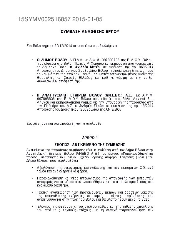 1. Παρακολούθηση της προόδου υλοπ. του Τοπικού Σχεδίου Δράσης Αειφόρου Ενέργειας (ΣΔΑΕ) του Δήμου Bόλο