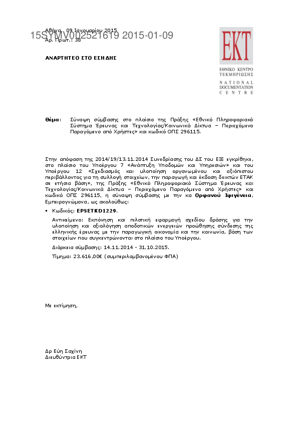 3. Επαναπροκήρυξη του υποέργου 7 «Κεντρικό Σύστημα Εκτυπώσεων» της πράξης MIS 380300