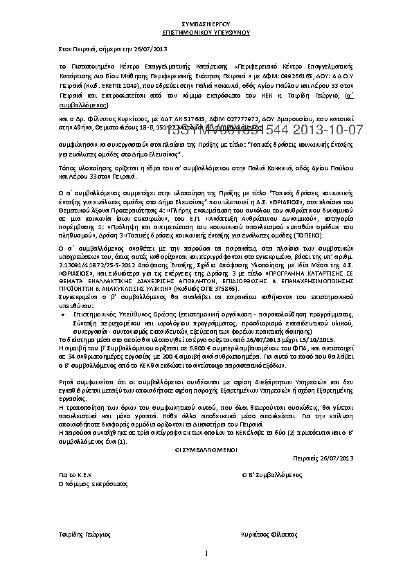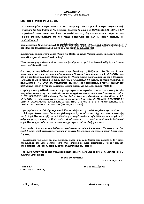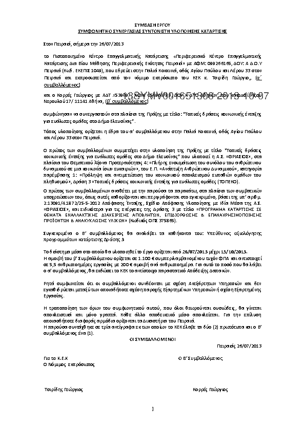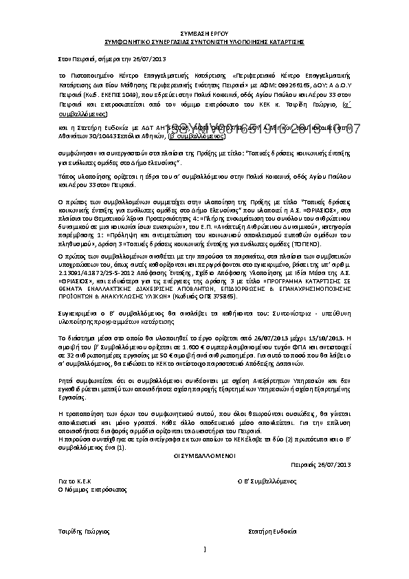 7. ΣΥΜΒΑΣΗ ΕΡΓΟΥ ΣΥΜΦΩΝHTIKΟ ΣΥΝΕΡΓΑΣΙΑΣ ΣΥΝΤΟΝΙΣΤΗ ΥΛΟΠΟΙΗΣΗΣ ΚΑΤΑΡΤΙΣΗΣ