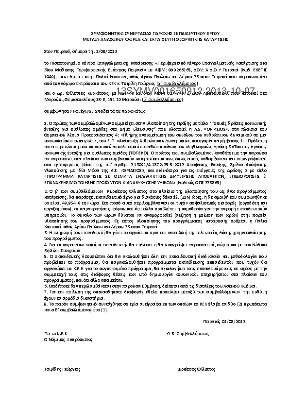 5. ΣΥΜΦΩΝΗΤΙΚΟ ΣΥΝΕΡΓΑΣΙΑΣ ΠΑΡΟΧΗΣ ΕΚΠΑΙΔΕΥΤΙΚΟΥ ΕΡΓΟΥ ΜΕΤΑΞΥ ΑΝΑΔΟΧΟΥ ΦΟΡΕΑ ΚΑΙ ΕΚΠΑΙΔΕΥΤΗ ΘΕΩΡΗΤΙΚΗΣ