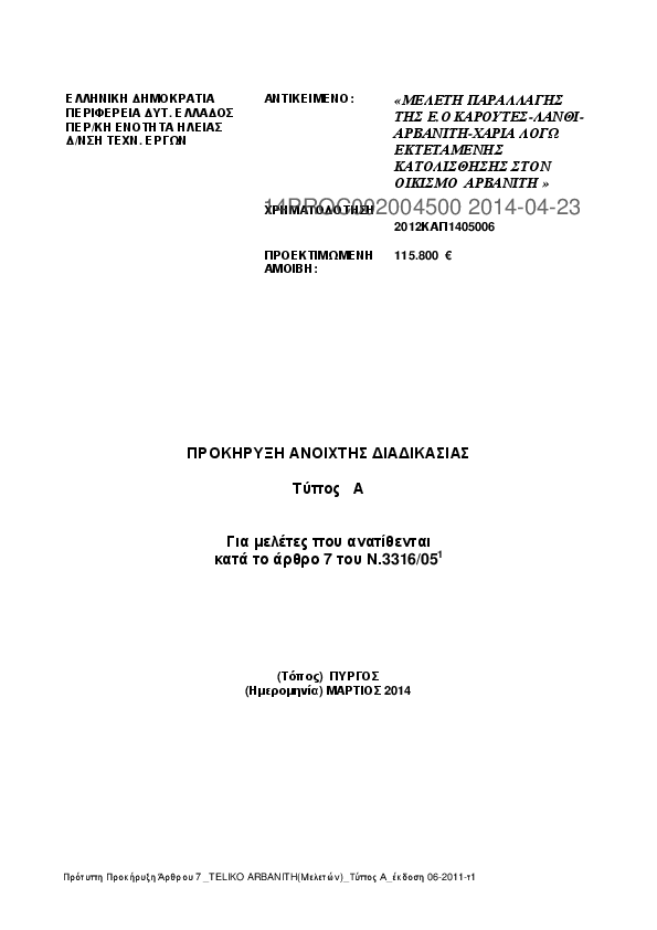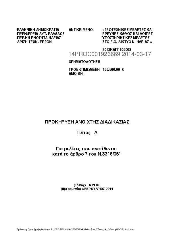 Αναζήτηση σε προκηρύξεις και συμβάσεις για:  Δράσης