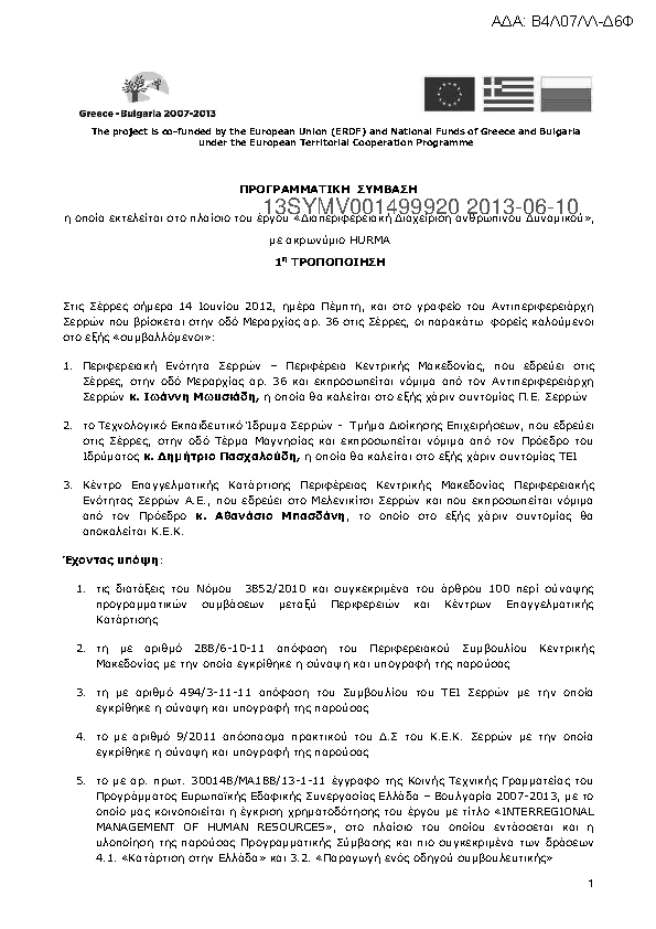 7. ΤΡΟΠΟΠΟΙΗΣΗ ΠΡΟΓΡΑΜΜΑΤΙΚΗΣ ΣΥΜΒΑΣΗΣ ΓΙΑ ΤΟ ΕΡΓΟ ΜΕ ΑΚΡΩΝΥΜΙΟ HURMA