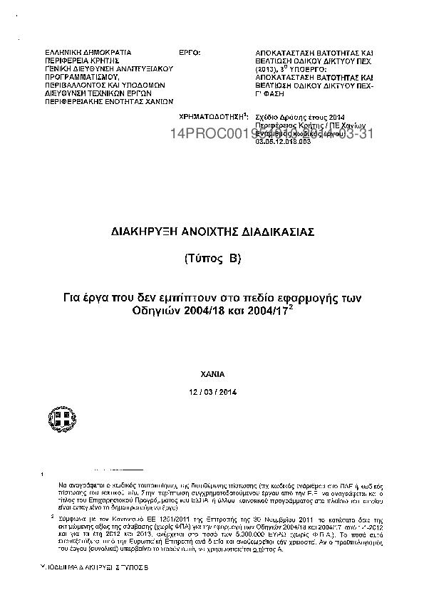 8. Η Διεύθυνση Τεχνικών Έργων της Περιφερειακής Ενότητας Χανίων προκηρύσσει ανοιχτό διαγωνισμό για την ανάθεση του έργου: ΑΠΟΚΑΤΑΣΤΑΣΗ ΒΑΤΟΤΗΤΑΣ ΚΑΙ ΒΕΛΤΙΩΣΗ ΟΔΙΚΟΥ ΔΙΚΤΥΟΥ ΠΕΧ (2013), 3O ΥΠΟΕΡΓΟ: ΑΠΟΚΑΤΑΣΤΑΣΗ ΒΑΤΟΤΗΤΑΣ ΚΑΙ ΒΕΛΤΙΩΣΗ ΟΔΙΚΟΥ ...