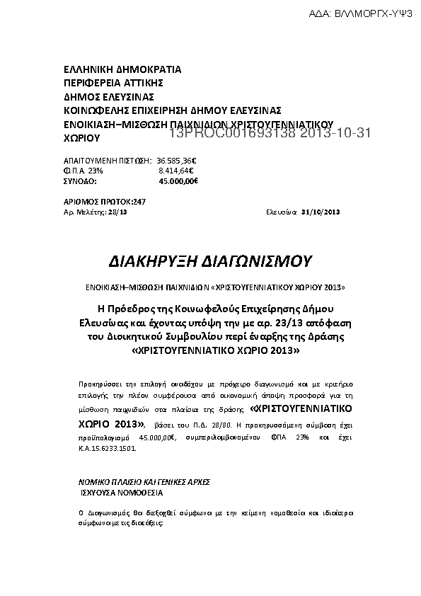 Αναζήτηση σε προκηρύξεις και συμβάσεις για: