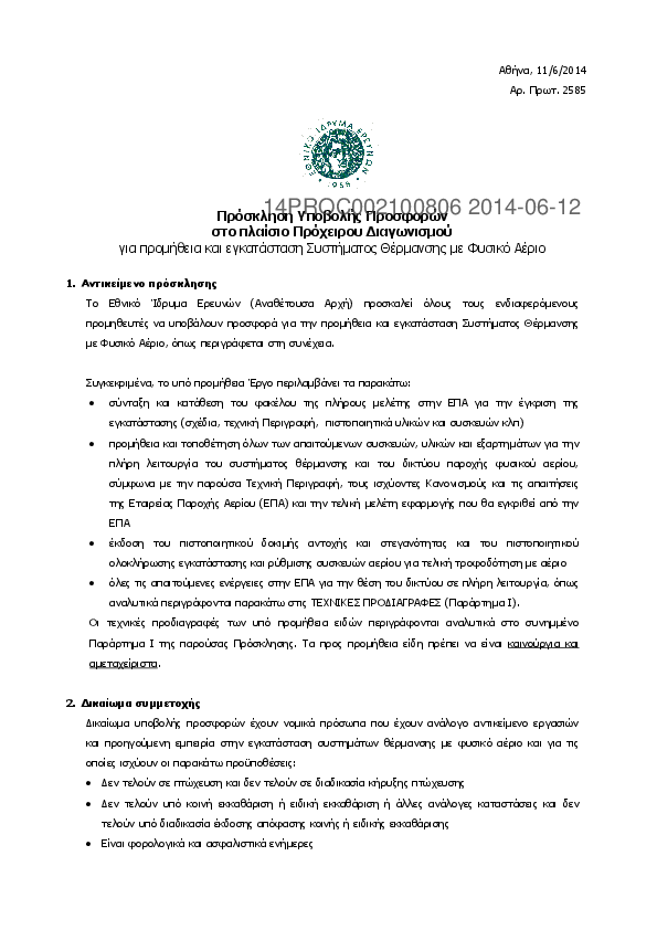 3. Ανοικτός Διεθνής Διαγωνισμός, με κριτήριο κατακύρωσης την πλέον συμφέρουσα από οικονομική άποψη προσφορά με τίτλο: «Υπολογιστικός Εξοπλισμός», κωδικός: EPSETKD0901, στο πλαίσιο της Πράξης με τίτλο «Εθνικό Πληροφοριακό Σύστημα Έρευνας και...