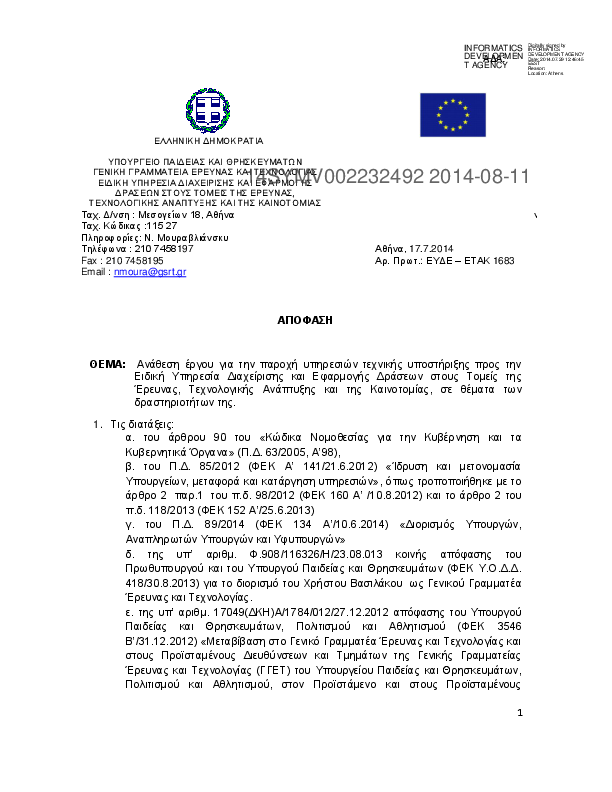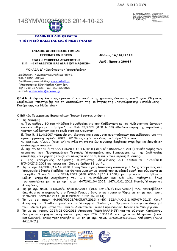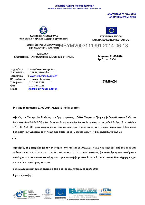 7. ΣΥΜΒΑΣΗ ΠΑΡΟΧΗΣ ΥΠΗΡΕΣΙΩΝ ΣΥΜΒΟΥΛΟΥ ΣΤΟ ΥΠΟΥΡΓΕΙΟ ΠΑΙΔΕΙΑΣ ΚΑΙ ΘΡΗΣΚΕΥΜΑΤΩΝ