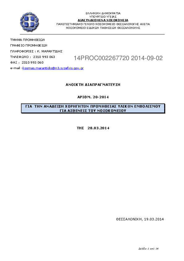 Αναζήτηση σε προκηρύξεις και συμβάσεις για: