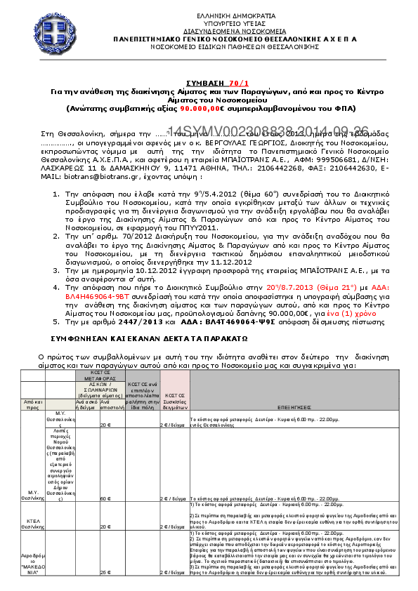 6. Υπηρεσίες Διακίνησης Αίματος και των Παραγώγων, από και προς το Κέντρο Αίματος του Νοσοκομείου Αχέπα