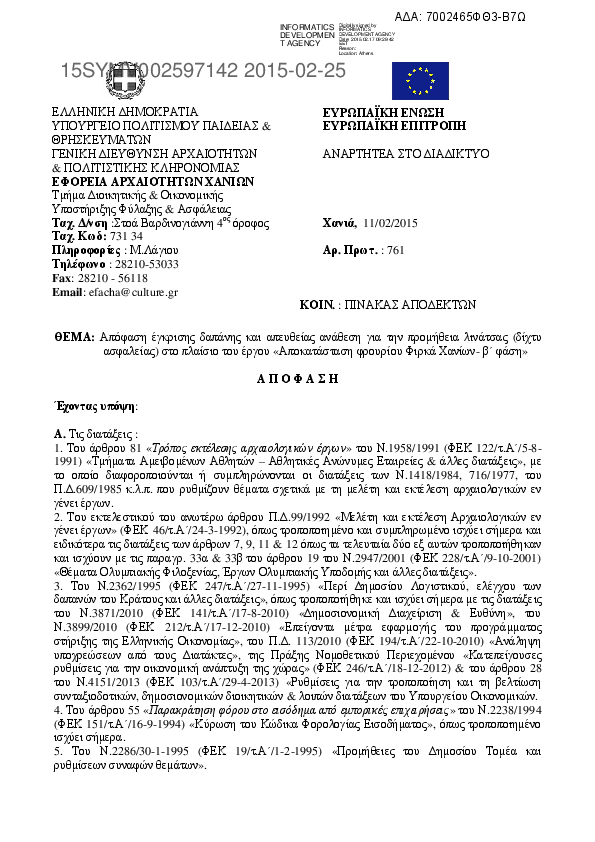 Αναζήτηση σε προκηρύξεις και συμβάσεις για: