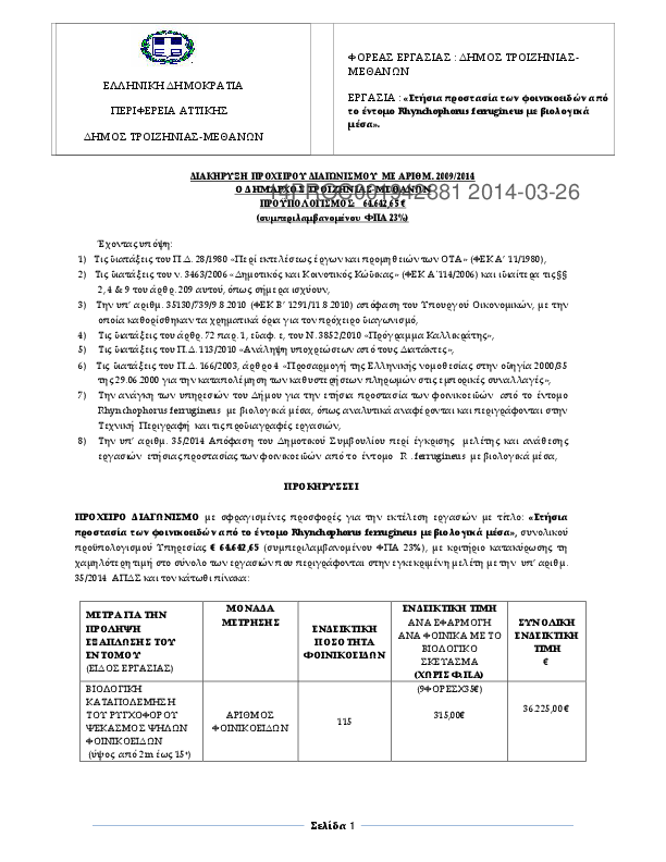 1. Ετήσια προστασία των φοινικοειδών από το έντομο Rhynchophorus ferrugineus με βιολογικά μέσα».
