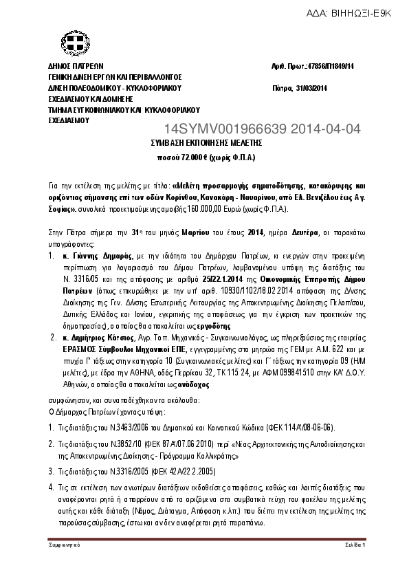 6. Συμφωνητικό προμήθειας ειδών κυκλοφοριακών ρυθμίσεων