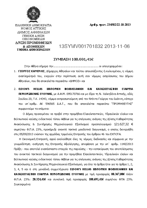 3. ΔΙΑΚΗΡΥΞΗ ΤΑΚΤΙΚΟΥ ΜΕΙΟΔΟΤΙΚΟΥ ΔΙΑΓΩΝΙΣΜΟΥ ΓΙΑ ΤΗΝ ΠΡΟΜΗΘΕΙΑ ΕΛΑΙΟΛΙΠΑΝΤΙΚΩΝ, ΥΔΡΑΥΛΙΚΩΝ ΕΛΑΙΩΝ ΚΑΙ ΒΕΛΤΙΩΤΙΚΟΥ ΚΑΥΣΗΣ ΕΝΔΕΙΚΤΙΚΟΥ ΤΥΠΟΥ ADBLUE ΓΙΑ ΤΙΣ ΕΠΕΙΓΟΥΣΕΣ ΑΝΑΓΚΕΣ ΤΗΣ Δ/ΝΣΗΣ ΚΑΘΑΡΙΟΤΗΤΑΣ, ΑΝΑΚΥΚΛΩΣΗΣ & ΣΥΝΤΗΡΗΣΗΣ ΜΗΧΑΝΟΛΟΓΙΚΟΥ ΕΞ...