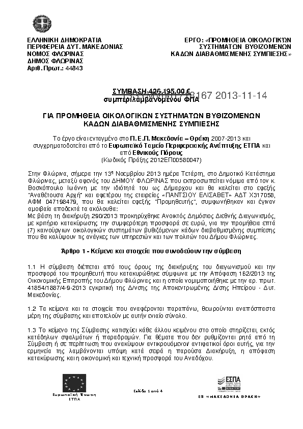 4. ΠΡΟΜΗΘΕΙΑ ΟΙΚΟΛΟΓΙΚΩΝ ΣΥΣΤΗΜΑΤΩΝ ΒΥΘΙΖΟΜΕΝΩΝ ΚΑΔΩΝ ΔΙΑΒΑΘΜΙΣΜΕΝΗΣ ΣΥΜΠΙΕΣΗΣ
