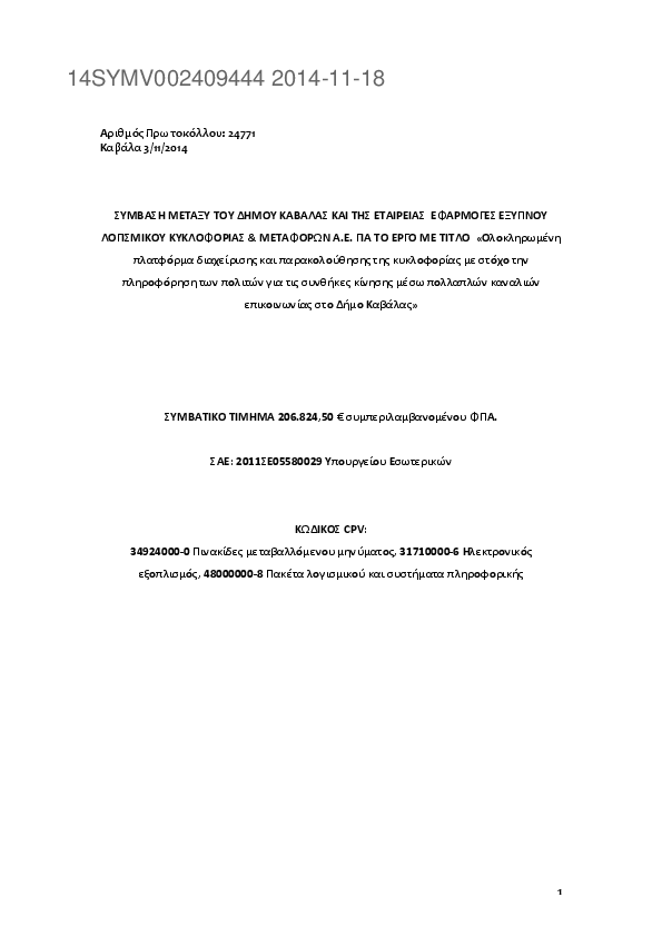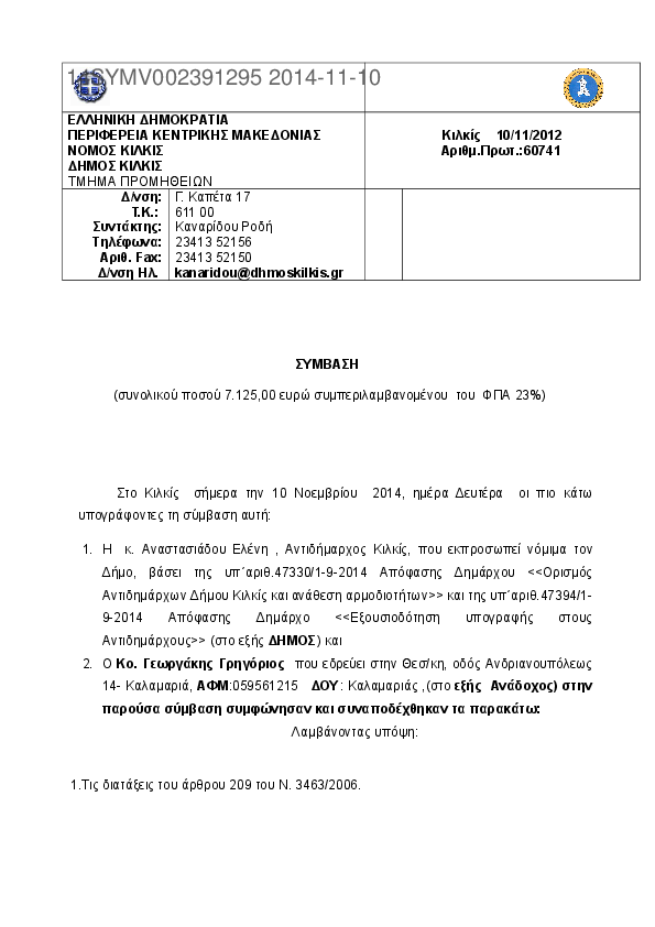 1. Συντήρηση φωτεινών σηματοδοτών Δήμου Κιλκίς ¨ αριθμ. Μελ. Ε11/2014
