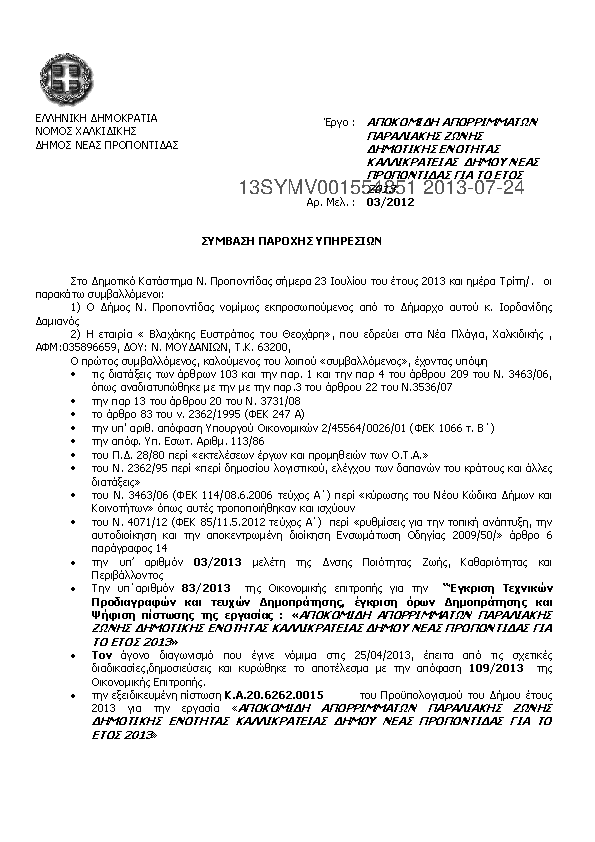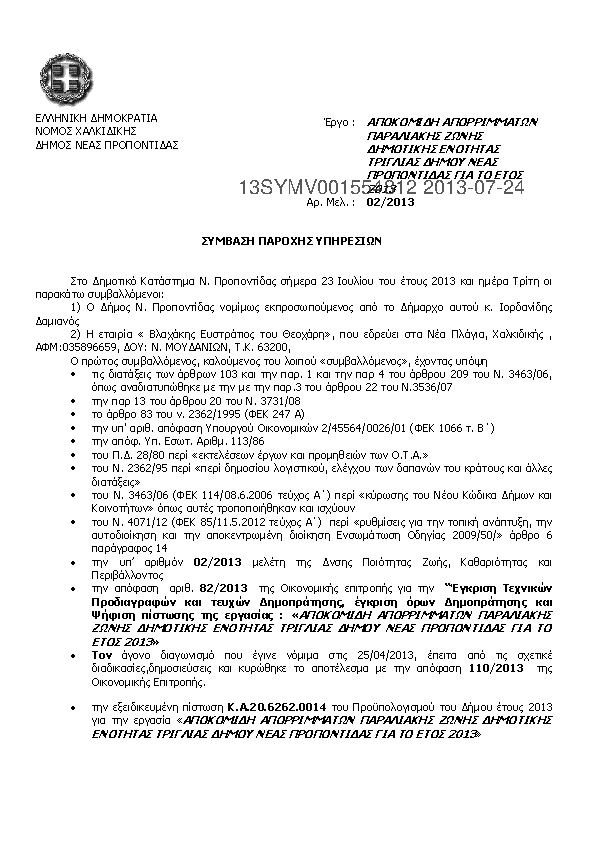 9. ΑΠΟΚΟΜΙΔΗ ΑΠΟΡΡΙΜΑΤΩΝ ΠΑΡΑΛΙΑΚΗΣ ΖΩΝΗΣ Δ.Ε. ΚΑΛΛΙΚΡΑΤΕΙΑΣ ΔΗΜΟΥ Ν.ΠΡΟΠΟΝΤΙΔΑΣ ΓΙΑ ΤΟ ΕΤΟΣ 2013