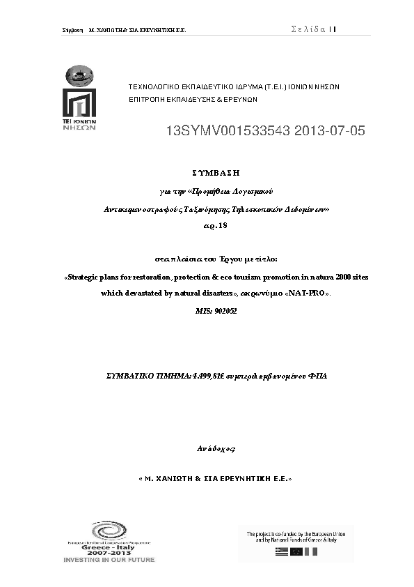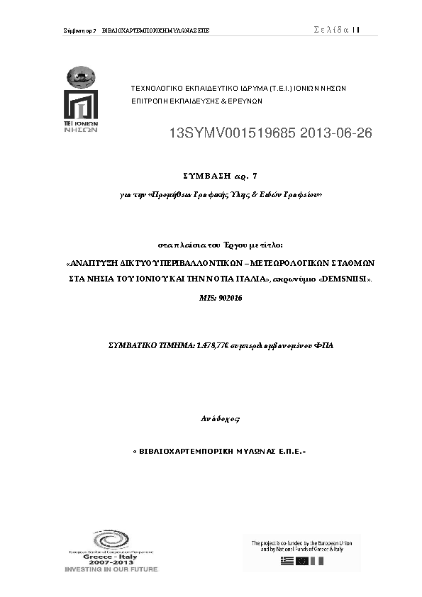 1. Διακήρυξη Ανοικτού Τακτικού Διαγωνισμού με Δημοσίευση για το υποέργο με α/α και τίτλο «Π.Σ. Λειτουργικών Υπηρεσιών», στο πλαίσιο της Πράξης με τίτλο «Ψηφιακές Υπηρεσίες Υποστήριξης και Εξυπηρέτησης του ΤΕΙ Ιονίων Νήσων» του Ε.Π. «Ψηφιακή...