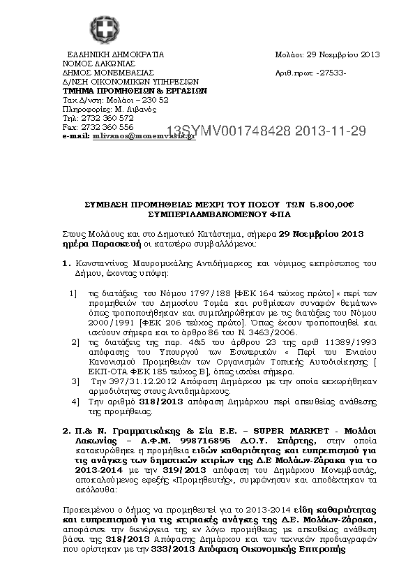 7. Προμήθεια ειδών καθαριότητας και ευπρεπισμού για τις ανάγκες των δημοτικών κτιρίων της Δ.Ε Μονεμβασί