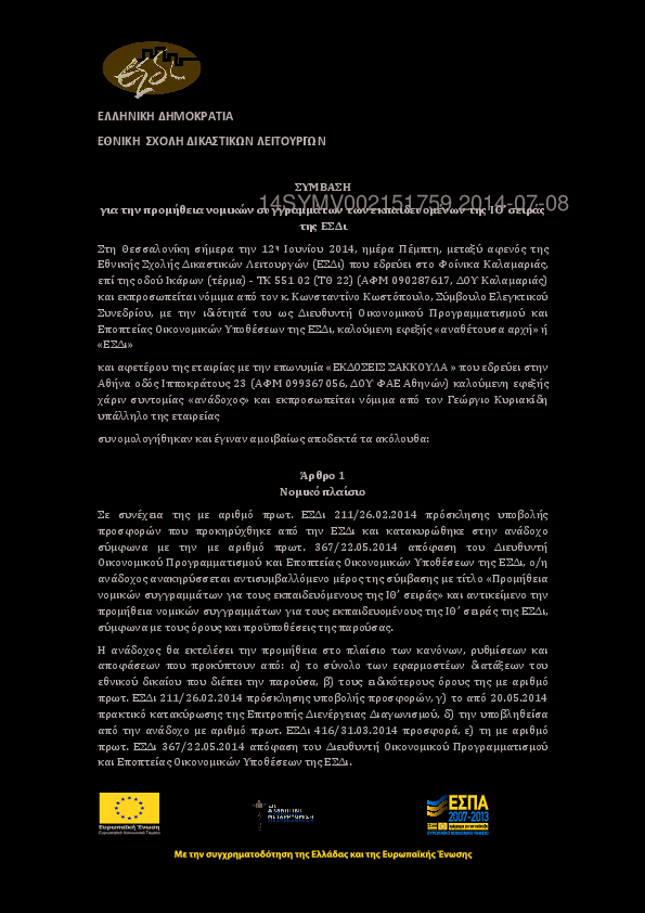 3. Σύμβαση προμήθειας ΄νομικών συγγραμμάτων για τους εκπαιδευομένους της ΙΘ΄σειράς της ΕΣΔι