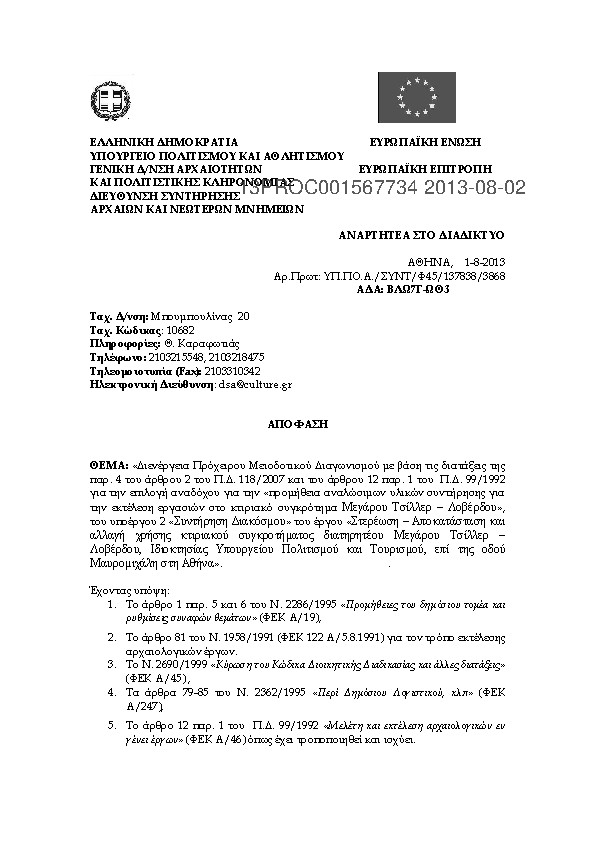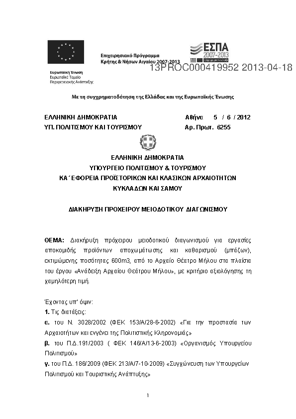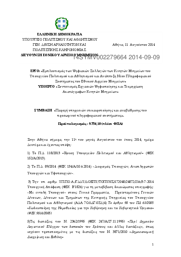 2. Επαναπροκήρυξη Διενέργειας Ανοικτού Διεθνούς Δημόσιου Διαγωνισμού για την επιλογή αναδόχου για το Υποέργο 3 «Προμήθεια Εξοπλισμού και Λογισμικού» του Έργου «Εμπλουτισμός των Ψηφιακών Συλλογών των Κινητών Μνημείων του Υπουργείου Πολιτισμο...