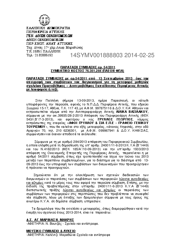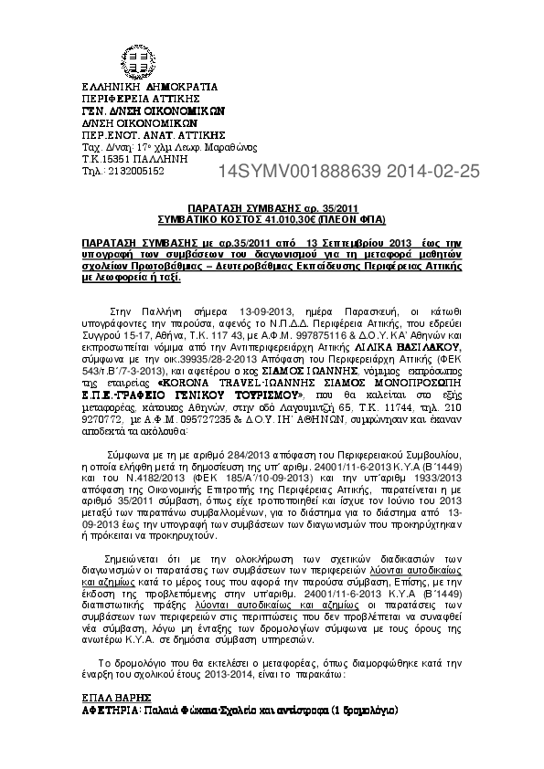 5. ΠΑΡΑΤΑΣΗ ΣΥΜΒΑΣΗΣ ΜΕΤΑΦΟΡΑΣ ΜΑΘΗΤΩΝ Π/ΘΜΙΑΣ & Δ/ΘΜΙΑΣ ΕΚΠΑΙΔΕΥΣΗΣ ΠΕΡΙΦΕΡΕΙΑΣ ΑΤΤΙΚΗΣ