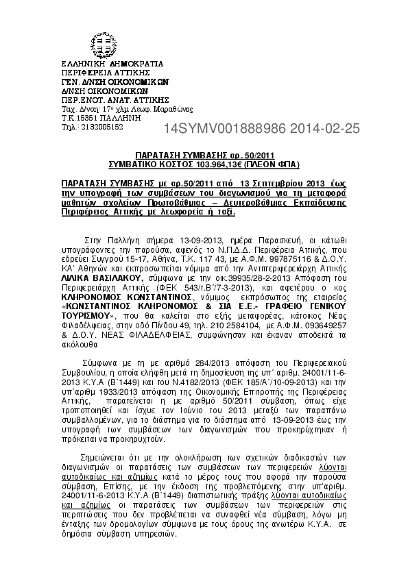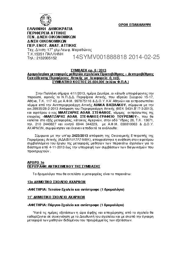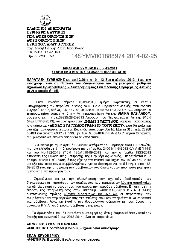 8. ΠΑΡΑΤΑΣΗ ΣΥΜΒΑΣΗΣ ΓΙΑ ΜΕΤΑΦΟΡΑ ΜΑΘΗΤΩΝ Α/ΘΜΙΑΣ & Δ/ΒΑΘΜΙΑΣ ΕΚΠΑΙΔΕΥΣΗΣ ΠΕΡΙΦΕΡΕΙΑΣ ΑΤΤΙΚΗΣ