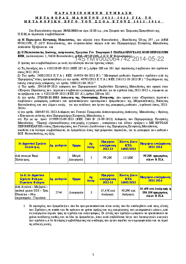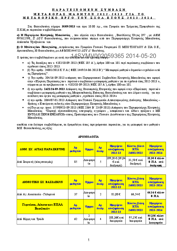 8. ΠΑΡΑΤΕΙΝΟΜΕΝΗ ΣΥΜΒΑΣΗ ΜΕΤΑΦΟΡΑΣ ΜΑΘΗΤΩΝ ΓΙΑ ΤΟ ΣΧΟΛΙΚΟ ΕΤΟΣ 2013-2014
