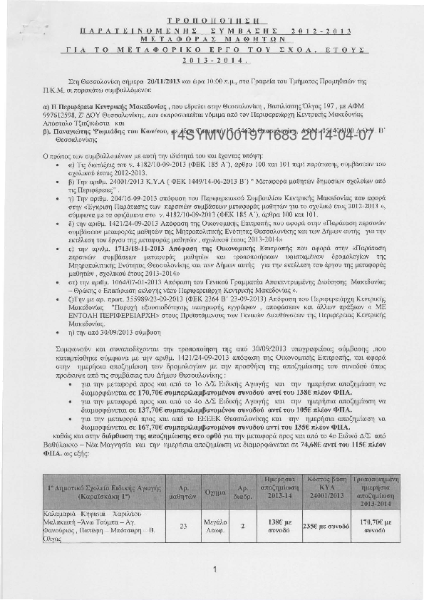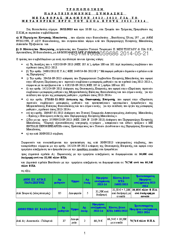 9. ΤΡΟΠΟΠΟΙΗΣΗ ΠΑΡΑΤΕΙΝΟΜΕΝΗΣ ΣΥΜΒΑΣΗΣ ΜΕΤΑΦΟΡΑΣ ΜΑΘΗΤΩΝ ΓΙΑ ΤΟ ΣΧΟΛΙΚΟ ΕΤΟΣ 2013-2014